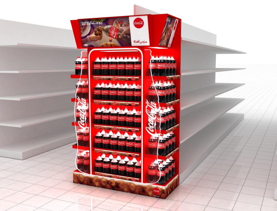 - Kệ cuối (Gondola End): được đặt ở 2 đầu dãy quầy hàng, Kệ cuối thường được sử dụng để trưng bày sản phẩm mới, sản phẩm khuyến mãi hấp dẫn, là POSM buộc phải có trong mỗi siêu thị, trung tâm thương mại. Kệ cuối có tỷ lệ tiếp cận/ghi nhớ lần lượt là 58%, 12%, ảnh hưởng đến quyết định mua hàng lên tới 25%.