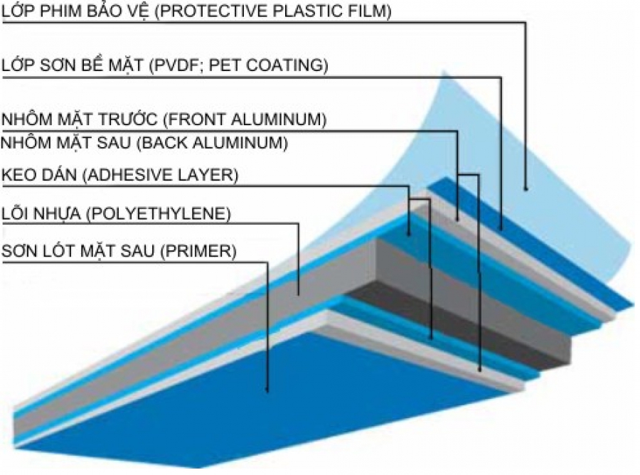Nhôm thường nhẹ, có khả năng dẫn nhiệu tốt gấp 3 lần so với chất liệu thép. Nhìn chung, tấm nhôm aluminium được ghép bởi 2 lớp nhôm chống ăn mòn, mỗi lớp dày 0,5 mm với lõi ở giữa bằng polyethylene – nhựa chống chày dày 3 mm.